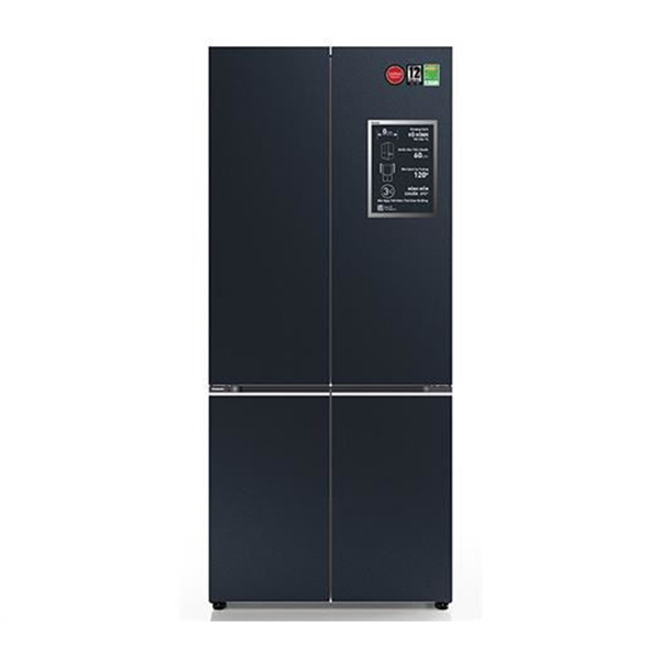 - Thiết kế: Tủ lạnh Multi Door 4 cánh, mặt kính cường lực màu đen sang trọng, tay nắm ẩn, phù hợp gia đình 4–6 người
