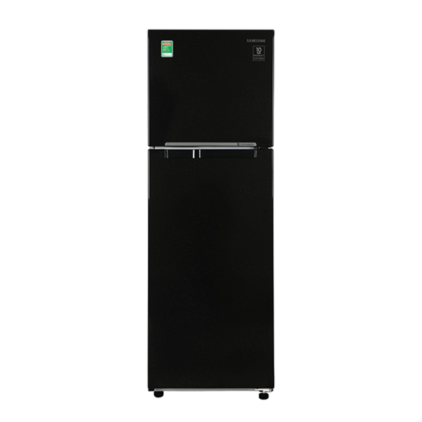 Thiết kế: Tủ ngăn đá trên, 2 cửa, màu đen sang trọng, chất liệu cửa kim loại phủ sơn bóng giả gương, tay cầm ẩn tinh tế